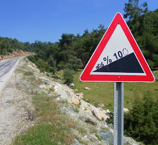 The other "Turkish Delight" is a nickname for the lovely chip seal that exists in poor condition on many of the roads throughout Turkey. Not sure if it is a commonly known nickname or one that is only used by bicyclists. I'd guess the latter. Now I know why almost everyone else on the bike trip chose to ride a mountain bike with fat tires and front suspension. This shot shows some of the relatively good pavement. Fortunately I wore padded shorts so things didn't get out of control.