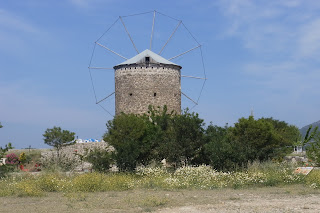 Sunday was our toughest riding day. Sixty miles and several challenging climbs. We passed old windmills at one spot along the way. They must have picked the right spot because just