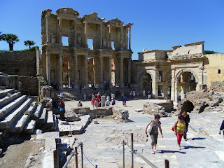 because the wind was calm and the ocean humidity created a haze. We took a group shot to memorialize this "peak" moment. From left to right, in front: our Turkish guide Firat, Dawn the Invincible, me; in rear: Bob, Mary, Nancy, our guides John and Danelle, Audrey, Marilyn, Jenny and Louise. Everyone except me and Firat is from British Columbia. Not pictured are Lima and Ken, our other guides who spend half the year in BC and half the year in Turkey doing sailing charters on their 50' sailboat.